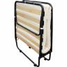 Раскладная кровать «Хельга М»  – это удобная и надежная модель раскладной кровати. Основание раскладной кровати выполнено из 14 деревянных ламелей. Диаметр стальной трубы составляет 25 мм, что позволяет выдерживать нагрузку до 120 кг. В комплекте к кровати идет высококачественный жесткий матрац. Благодаря 4 колесикам кровать легко перемещать.