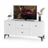Валенсия стенка в гостиную № 66. Цвет - Белый Шагрень. Габариты (ШхГхВ) 327,2х38,3х225,2 см. Ниша для ТВ (ШхГхВ): 133х38х117 см. Универсальная сборка. Тумба под ТВ оснащена двумя выдвижными ящиками по центру и нишами с полкой за распашными дверками по краям. Над тумбой полка. За дверкой каждого пенала расположены 6 полок - четыре верхние полочки выполнены из стекла, нижние две из ЛДСП.